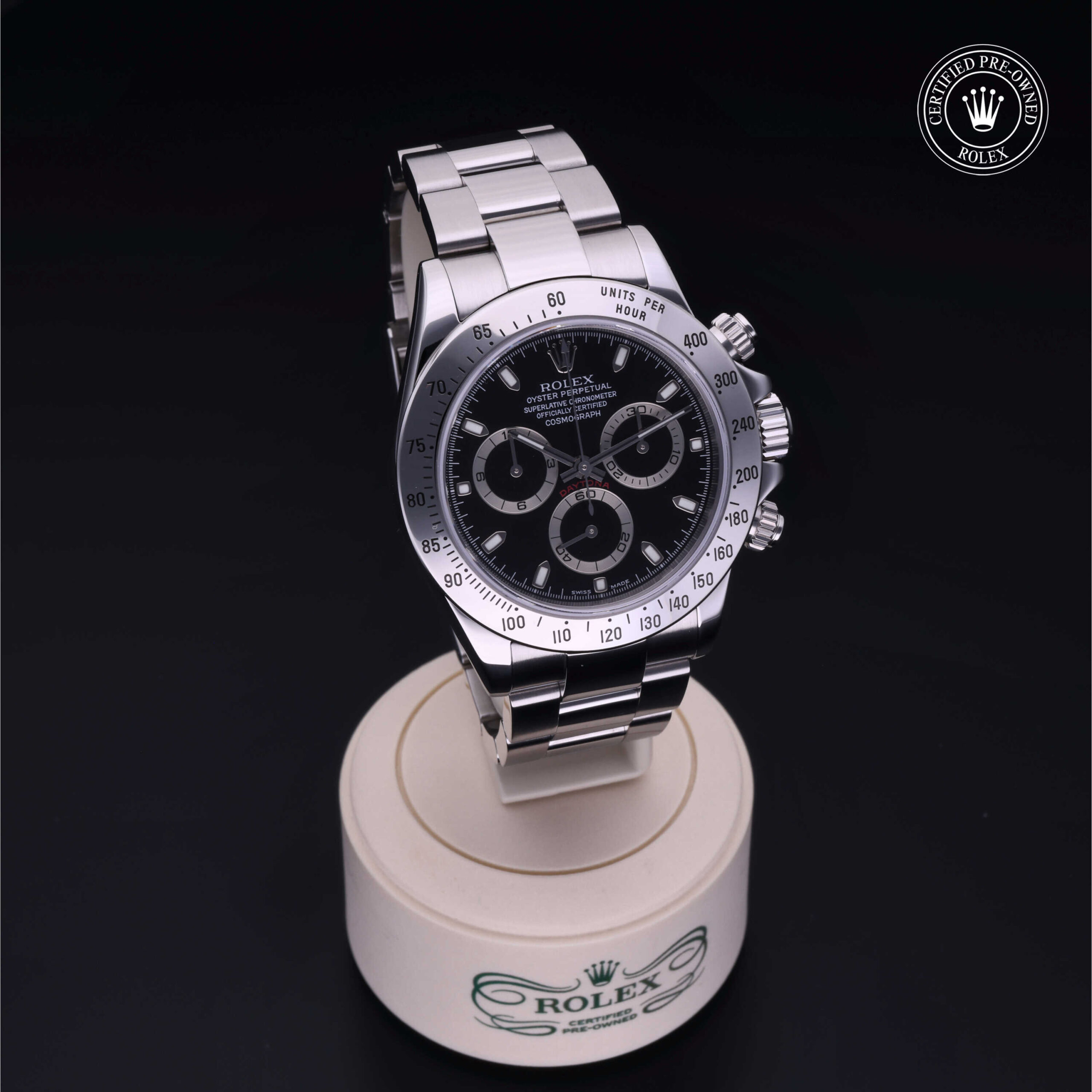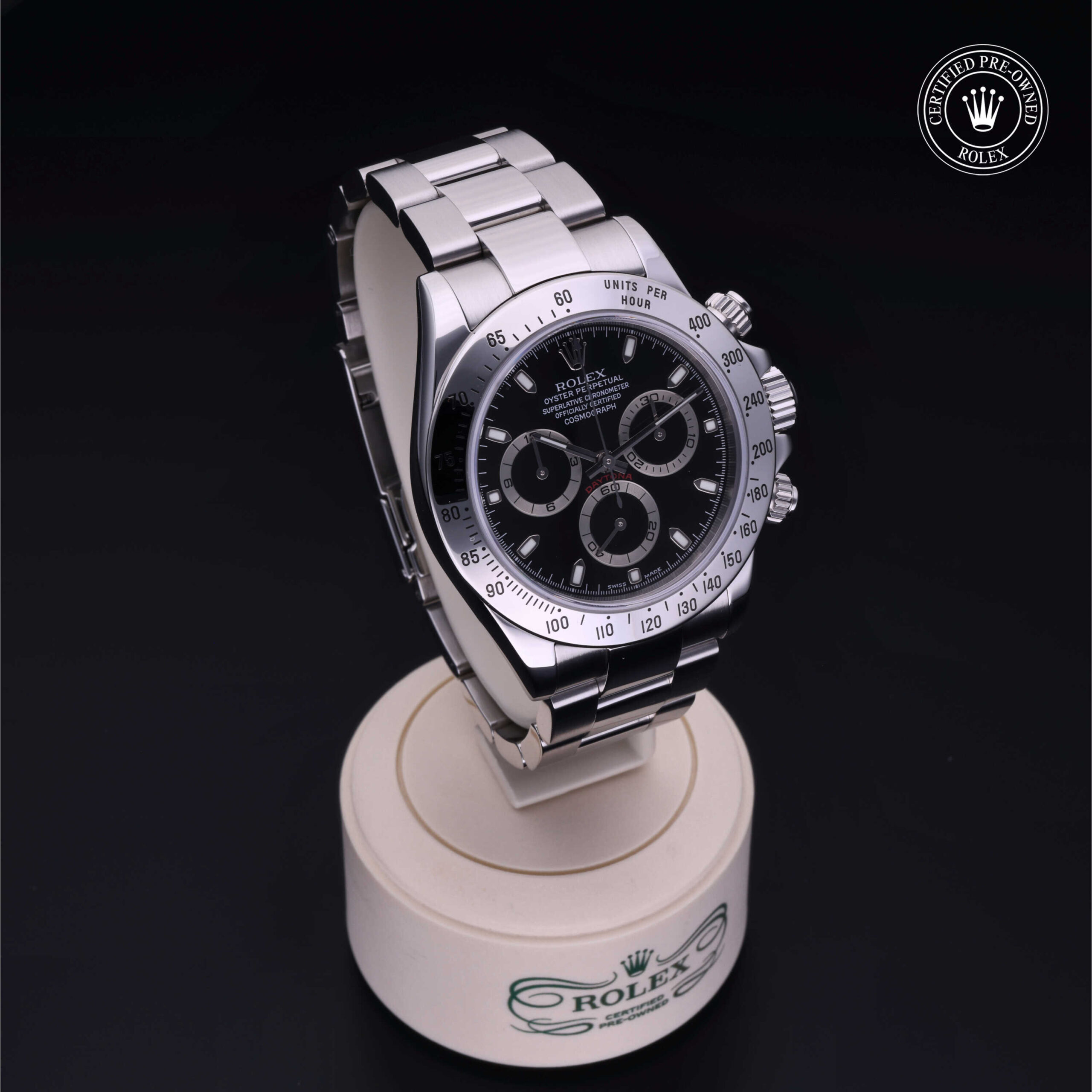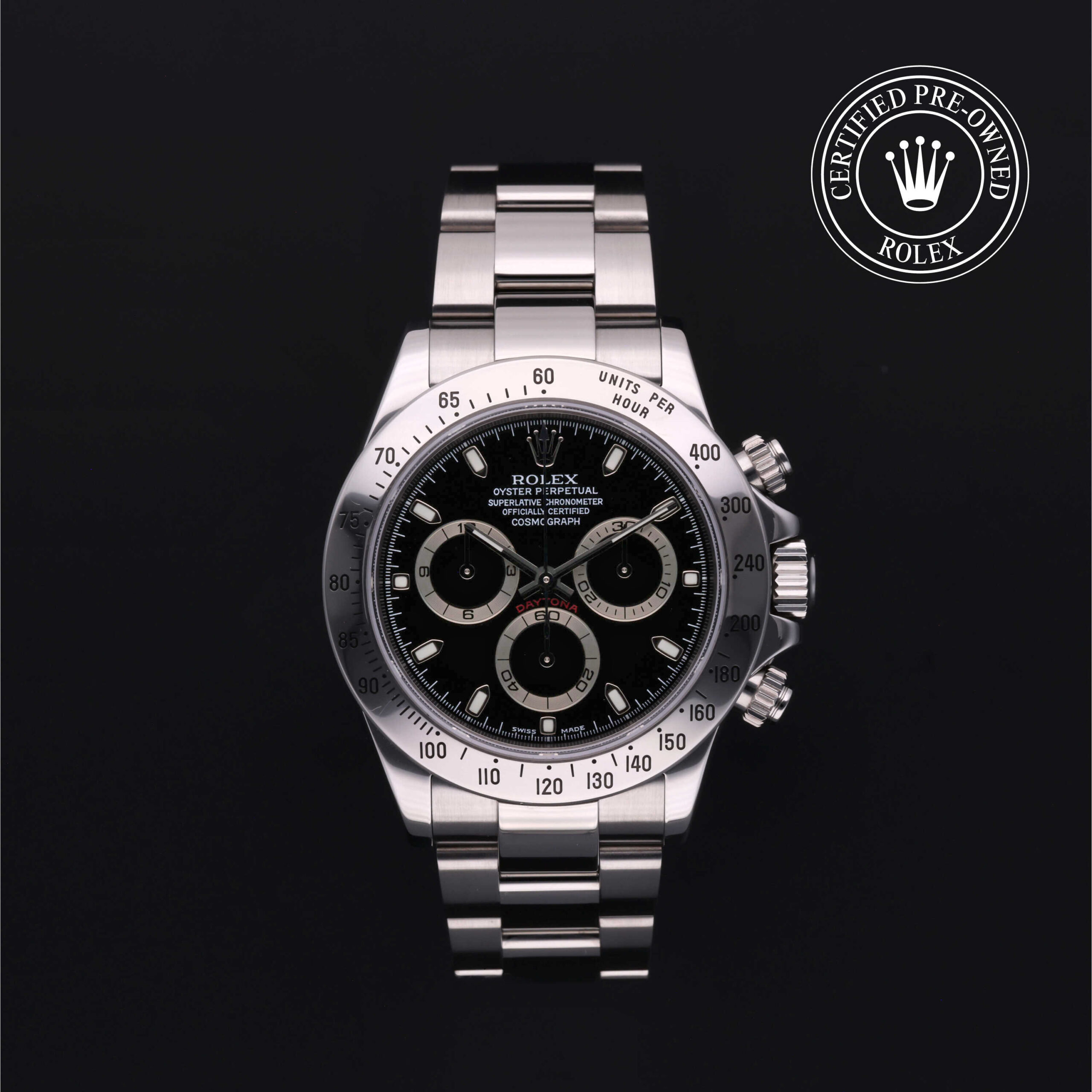 Fin dal suo lancio nel 1963, l’Oyster Perpetual Cosmograph Daytona è l’orologio di riferimento degli appassionati di automobili e di velocità. Oggi questo cronografo iconico è leggendario per la sua affidabilità grazie al suo movimento meccanico ad alte prestazioni interamente sviluppato e prodotto da Rolex. Utilizzando la scala tachimetrica sulla lunetta, è possibile misurare gli intervalli di tempo o determinare la velocità media.