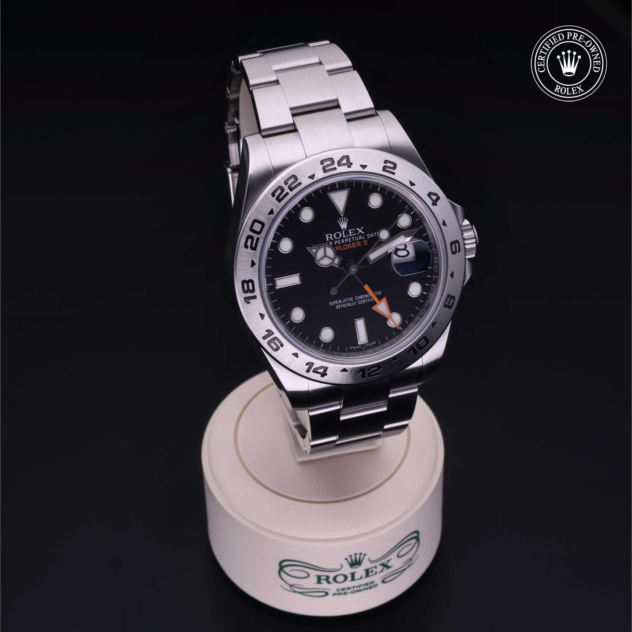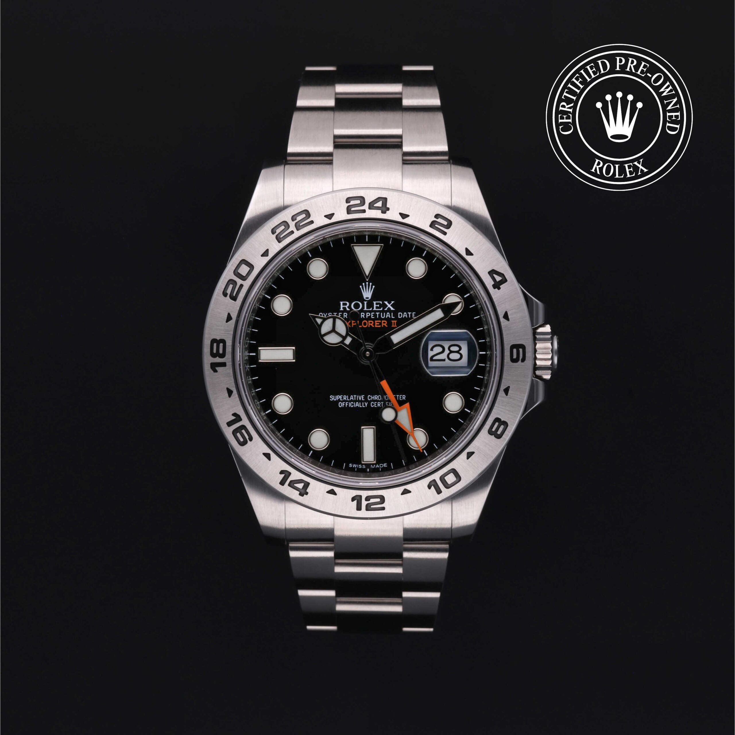 L’Oyster Perpetual Explorer II è l’orologio di riferimento delle donne e degli uomini che si avventurano ai confini della Terra. Presentato nel 1971, è stato progettato per le condizioni estreme e permette di distinguere le ore diurne da quelle notturne grazie alla lancetta 24 ore supplementare che punta alla scala graduata 24 ore incisa sulla lunetta.