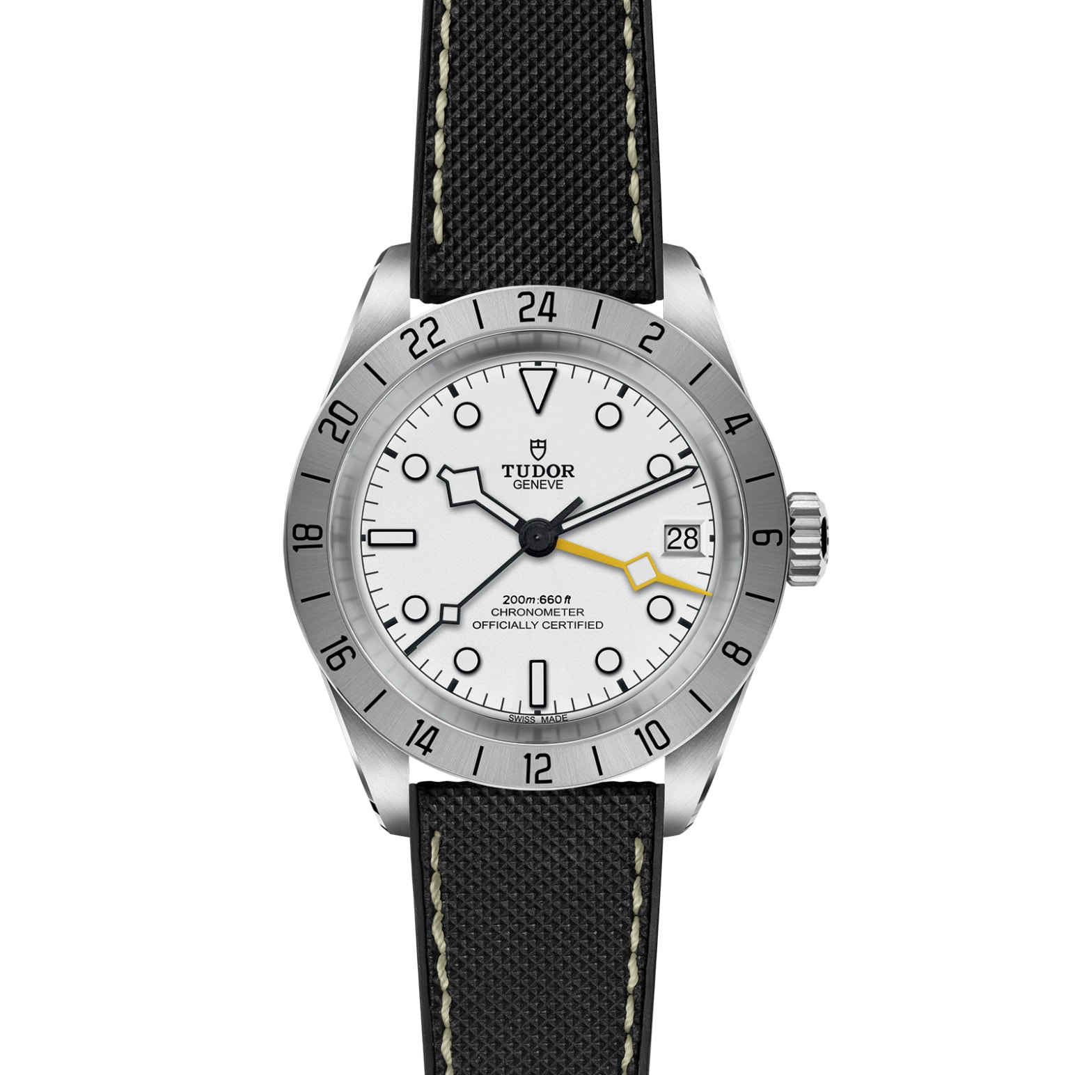 Il Black Bay Pro è dotato di doppio fuso orario, una complicazione tecnica che permette di visualizzare l'ora locale senza perdere di vista l'ora di un altro fuso orario. Compatto, robusto e sportivo, questo modello presenta numerosi dettagli estetici unici e celebra lo spirito degli orologi tecnici che TUDOR ha prodotto per i professionisti nel corso della sua storia. Riconoscibile grazie alla lunetta fissa satinata graduata 24 ore e alla lancetta "Snowflake" 24 ore di colore giallo, il Black Bay Pro è animato dal Calibro di Manifattura TUDOR MT5652 con funzione GMT integrata. Quest'anno viene introdotto un quadrante opalino all'interno della gamma.